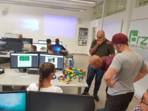 To begin, students tested a new scenario designed by Professor Carla PÜTZ. The teams had to make a 3D construction with 100 Duplo parts in accordance with precise specifications.