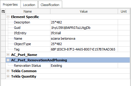 The layout of property sets (collapsed / expanded) is remembered when viewing objects. Note: settings are not saved in the BVF file.