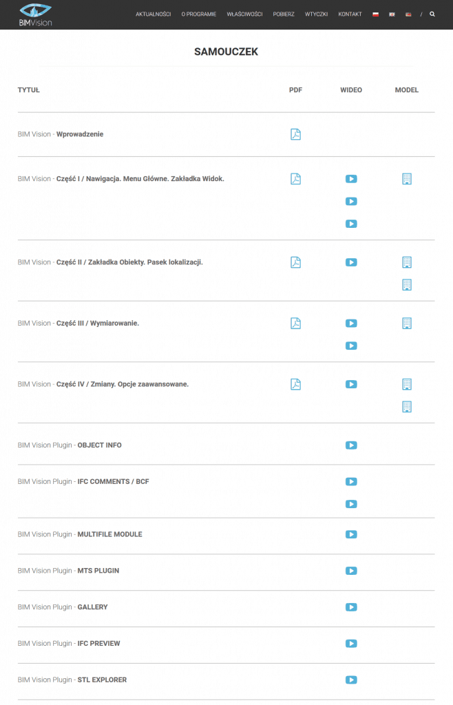 Dla naszych użytkowników stworzyliśmy nową zakładkę SAMOUCZEK na naszej stronie internetowej, gdzie znaleźć można filmy instruktażowe, podręczniki i studia przypadku do samodzielnych ćwiczeń. Zapraszamy do zaznajomienia się z już dostępnymi materiałami i zachęcamy do monitorowania strony. Nasz zespół pracuje nad kolejnymi opracowaniami, które cyklicznie będą pojawiać się na łamach strony BIMvision .